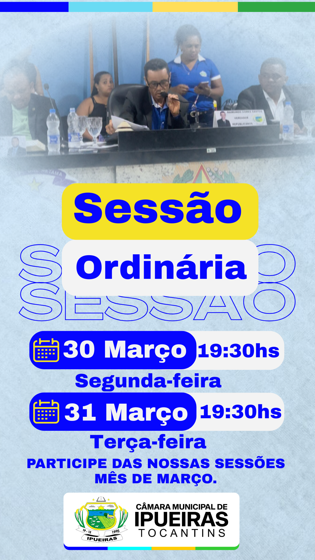 Sessão Ordinária – Câmara Municipal de Ipueiras–TO.